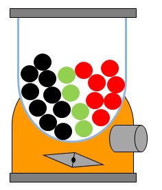 12. En la tercera planta encuentran un salón de juegos. En la puerta hay una máquina con bolas de tres colores. Todas las bolas tienen premio excepto las bolas negras.