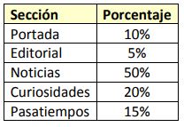 32. Dos semanas después, los alumnos de 6º realizan una encuesta para saber qué sección del periódico ha gustado más, excluyendo la sección de publicidad.