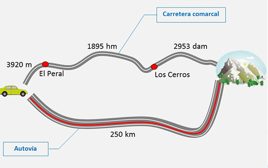 Consultan el mapa de carreteras y hay dos caminos posibles: uno directo, por autovía, y otro por carretera comarcal, por el que tienen que pasar por dos pueblos.