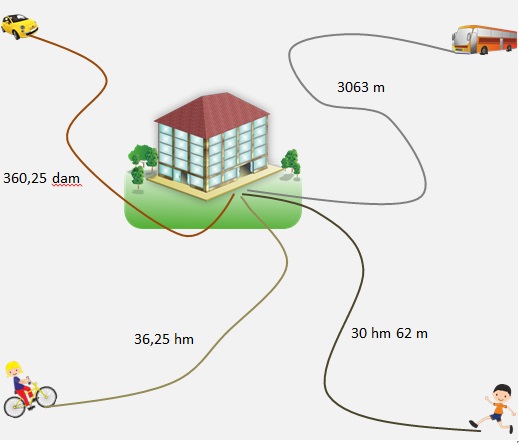 En el siguiente dibujo puedes ver las distancias que tienen que recorrer por cada una de las vías: