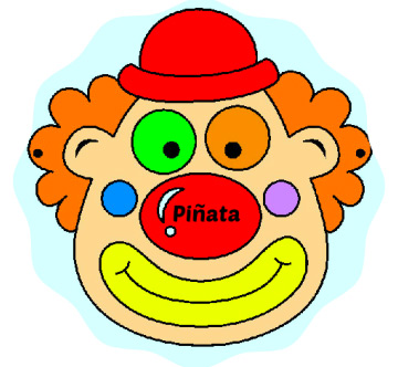 Si optas por la piñata de payaso, elige cartulinas gruesas de color llamativo para hacer los círculos. Después, dibuja en dos cartulinas finas el rostro del payaso y no olvides colorear su nariz en rosa, rojo o naranja (debe ser un color claro y alegre para que destaque). Calcula el tamaño de la cara del payasete, que no quede demasiado pequeña ni demasiado grande, y pega las caras sobre los círculos (uno a cada lado de la bolsa).