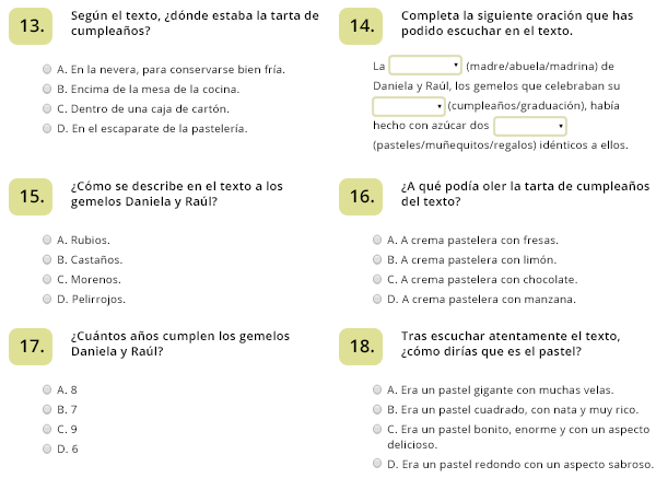 - En primer lugar verás las preguntas relacionadas con lo que vas a oír, pero no tendrás que contestar nada todavía.